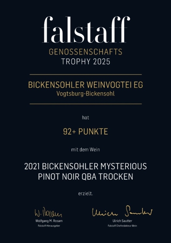 2021 Bickensohler Mysterious Pinot Noir QbA trocken -> Gold