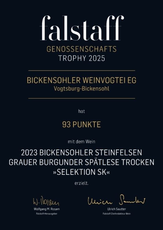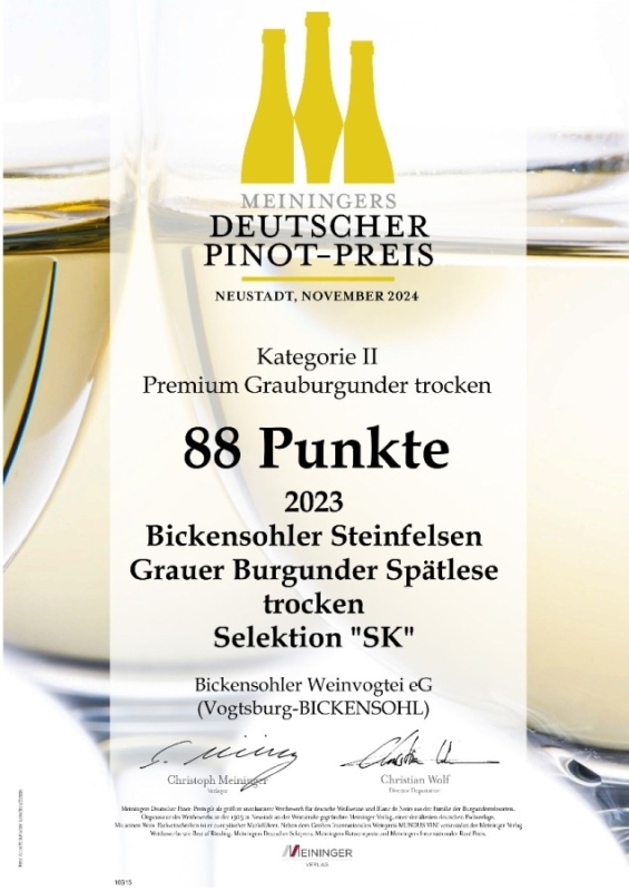 2020 Bickensohler Grauer Burgunder maischevergoren Selektion "SK" -> 91,5 Punkte