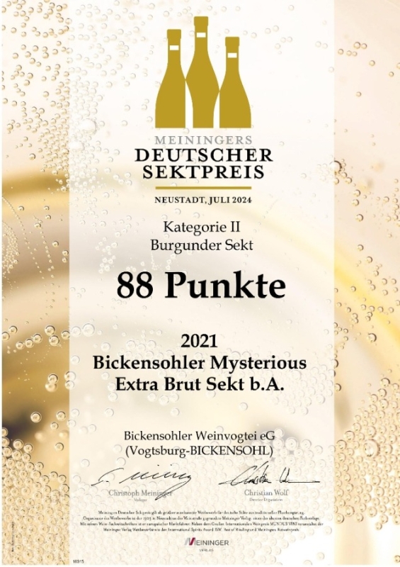 Bickensohler Mysterious Extra Brut Sekt b.A. -> 88 Punkte