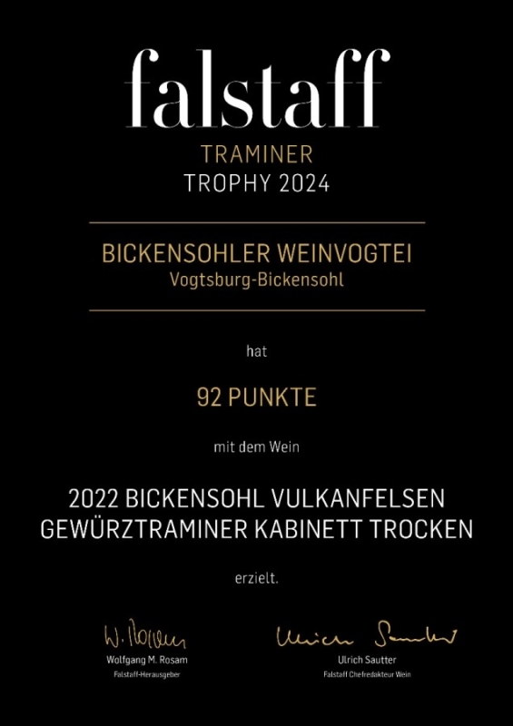 2022 Vulkanfelsen Gewürztraminer Kabinett trocken -> 92 Punkte